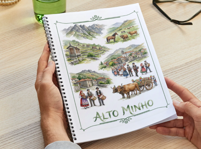 Introducing the Josalma Alto Minho Collection, a tribute to the tradition and beauty of northern Portugal. Each notebook in this range celebrates Minho's rich culture, featuring charming illustrations of mountain landscapes, typical villages, traditional costumes, and rural life scenes. Perfect for those who value authenticity and heritage, these notebooks are ideal for notes, journals, or creative projects. With practical spiral binding for added convenience, the Alto Minho Collection invites you to write with soul and preserve memories.